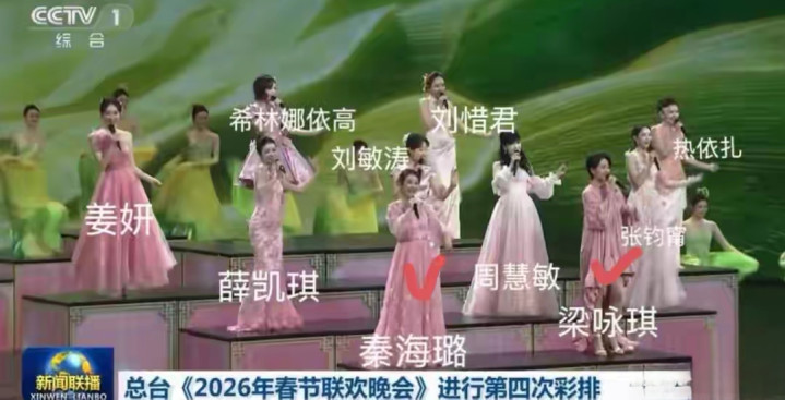 央视春晚官宣的声势里,周慧敏的名字和刘敏涛、热依扎、梁咏琪排在一块儿。