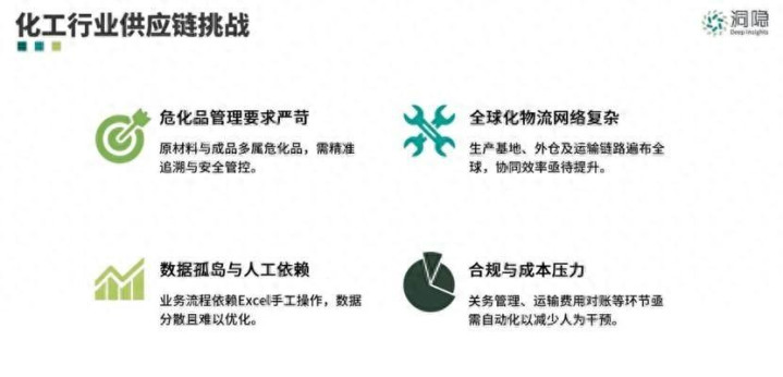 化工行业的非常性决定了它的供应链的复杂性,对物流和仓储的料理条目更为严苛,化工企业的供应链料理濒临着诸多挑战: