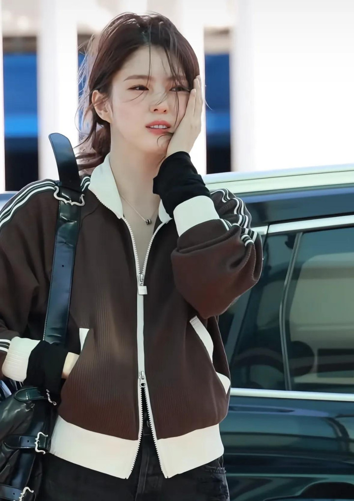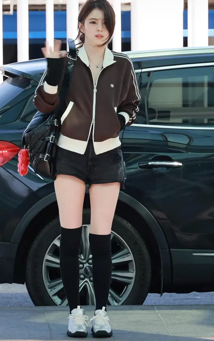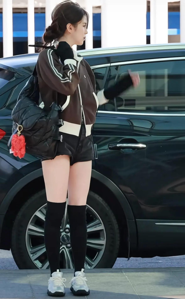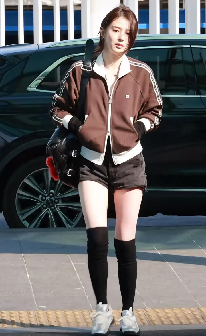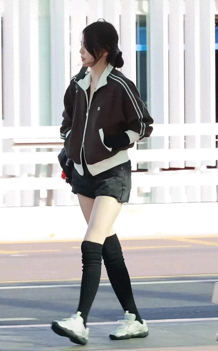 她穿了一件咖色的畅通外衣,搭配玄色的牛仔短裤和玄色的长筒袜,脚踩银色畅通鞋,一整套穿搭齐是相比失业的,偶而齐是斐乐家的衣着。