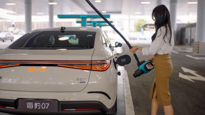 另外多说一嘴,比亚迪的闪充桩跟传统的特回电的那种快充桩皆备不一样,比亚迪闪充桩的充电枪是“吊挂式”的,克己是拦截易脏,并且女生用起来不致力,当今照旧有东谈主拍摄到了闪充桩的什物,讲解比亚迪照旧在开动不时建站了,硬核闪充时期树立行业新标杆。