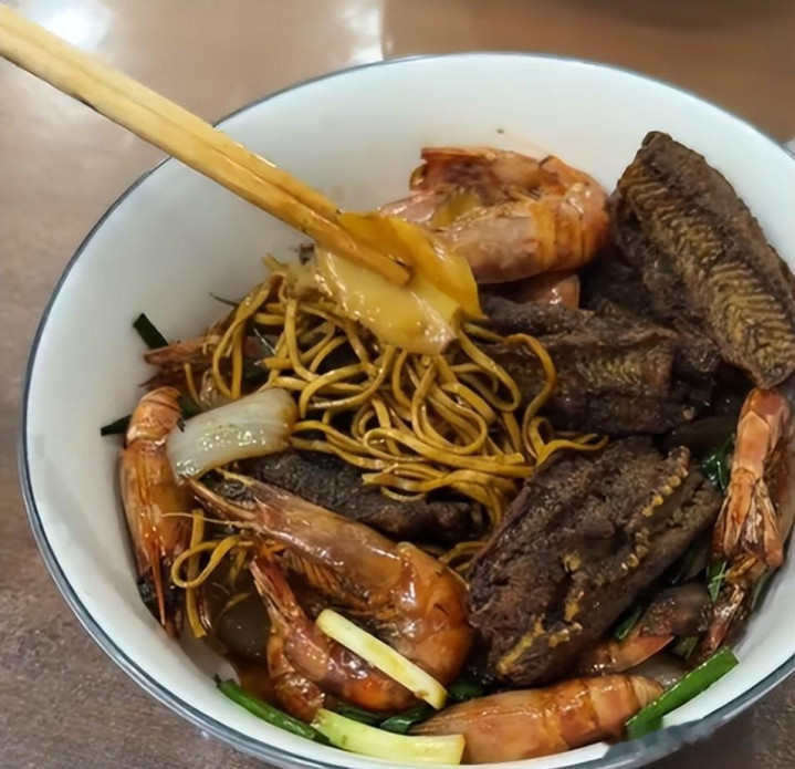 鳝鱼现杀现作念鲜味儿在线,虾的口感也很崭新,面汤的滋味也算上乘,可即便食材都算优质,也架不住这五百多一碗的订价。