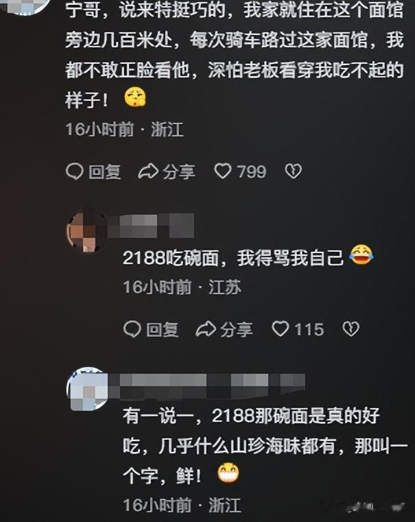 如今时隔泰半年,这家店不仅莫得转念订价,反而还推出了 2188 元的天价面,依旧靠着离谱的订价诱导眼球,不得不说,这营销花样照实够 “另类”。